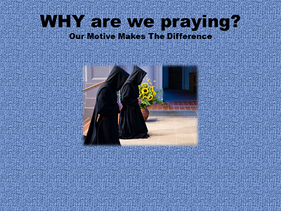 We can take pride in almost anything; we can even take pride in our humility. Acting humble and being humble are two different things. Praying is like that; we can pray so as to appear spiritual; or, we can pray to establish a relationship with God. Here we are back to rewards. Once again, getting is not an option. When we pray, we will get something. What Jesus is training us to get is a reward from our heavenly Father. How? Praying in secret.