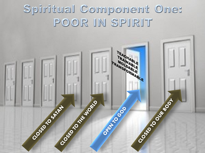 Let’s listen to Jesus as He outlines our basic spiritual needs: Spiritual Component One Mat 5:3 Blessed are the poor in spirit, for theirs is the kingdom of heaven. Luke 6:20 (NIV) Looking at His disciples, He said: “Blessed are you who are poor, for yours is the kingdom of God.”